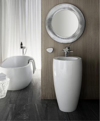Keramikkörper: Waschtisch unterbaufähig 90 cm (Ablage links/rechts), 120 cm (links/rechts) und 160 cm (Ablage nur rechts), Waschtischschale Ø 45, Ø 52, 75 und 80 cm, Waschtisch bodenstehend mit Säule 52 cm, Waschtisch frei stehend Ø 53 cm, Einbauwaschtisch von oben Ø 50 cm, Halbeinbauwaschtisch 75 cm, Wand-WC spülrandlos (Tiefspüler), Stand-WC-Kombination (Tiefspüler mit Spülkasten), Stand- und Wandbidet, Absauge-Urinal mit oder ohne Deckel