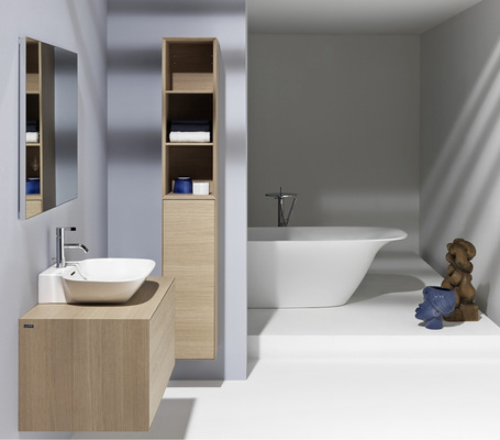 Eines der Highlights von Ino ist ein spektakulärer Waschtisch mit integrierter reinigungsfreundlicher Ablage mit nach oben gezogener Rückwand. Zur Kollektion gehören außerdem wandmontierte Waschtische, Waschtischschalen und Waschtische für den Einbau von oben, hochwertige Unterbaumöbel und ein Hochschrank mit Türe über Eck. Der Ruhepol im Bad von Ino ist eine ovale, frei stehende Badewanne mit oder ohne Kopfstütze. Da sie einwandig ist, zeichnet sie sich durch sehr dünne Kanten und ein geringes Gewicht aus. Passend zu Ino bietet Laufen ein spülrandloses WC und Bidet von Palomba an.