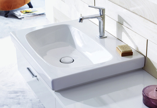 Keramikkörper: Waschtisch 65, 93, 123, Doppelwaschtisch 133 cm, Waschtisch mit Konsole oder Unterschrank symmetrisch 132 und 160 cm, Waschtisch mit Konsole oder Unterschrank asymmetrisch 126 und 154 cm, Wand-WC-Tiefspüler, Wand- und Standbidet