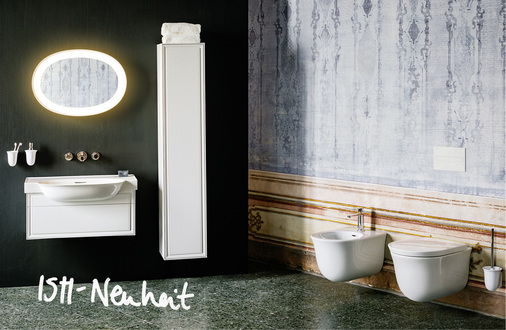 Zur Kollektion gehören Waschtische und Waschtischschalen, WCs, ein Bidet und eine Badewanne in der charakteristischen Formensprache. Dazu passen Armaturen, Spiegel und Accessoires sowie eine praktische Möbelkollektion in reduziertem Design, die The New Classic zu einem kompletten Angebot für das Bad machen.