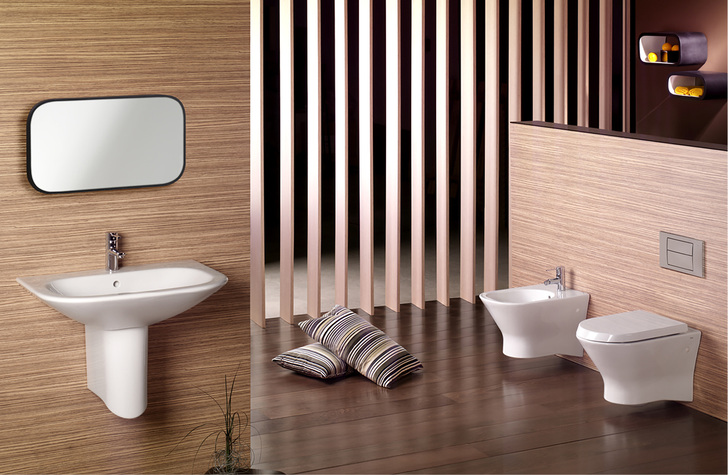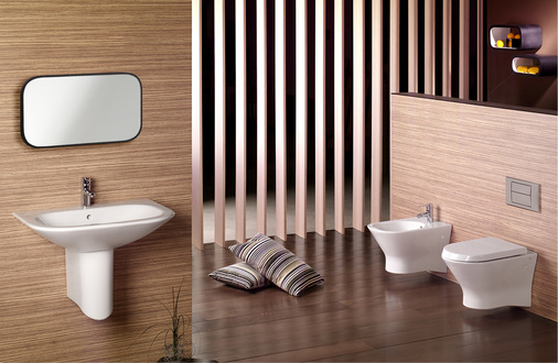 Keramikkörper: Waschtisch 90 cm Ablage links oder rechts, Möbelwaschtisch 68,5 cm, Waschtisch unterbaufähig 55, 60, 68,5 cm (optional mit Halbsäule), Handwaschbecken 45 cm, Wand-WC ( Tief- und Flachspüler), Wand-WC spülrandlos, Stand-WC, Stand-WC-Kombination, Wand- und Standbidet, Urinal