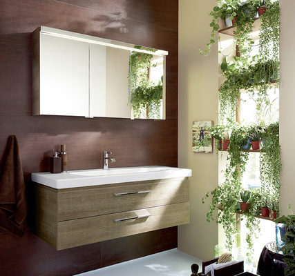 Dazu passt indirektes, blendfreies Licht von oben. Doch auch ohne die optionale LED-Waschtischbeleuchtung bietet die Ausstattung der Spiegelschränke mit zwei bzw. drei beidseitig verspiegelten Türen zahlreiche Annehmlichkeiten: Glaseinlegeböden, Doppelsteckdose, Vergrößerungsspiegel sowie eine Magnetleiste. Außerdem sehen die Sets Kombinationen aus Waschtischen mit Leuchtspiegeln vor. Hochschrank, halbhoher Schrank sowie weitere passende Keramik- und Mineralgusslösungen aus dem Programm von Burgbad runden das Sortiment ab.