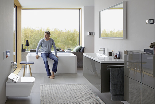 Zubehör: Acryl-Wannenprogramm als Einbau- und Vorwandversion mit ein oder zwei Rückenschrägen, optional mit Nackenkissen, Zusatzmodule für Whirlwanne; Duschwanne Rechteck und Quadrat, Hocker, WCs mit Dusch-WC-Sitz Sensowash Slim kombinierbar