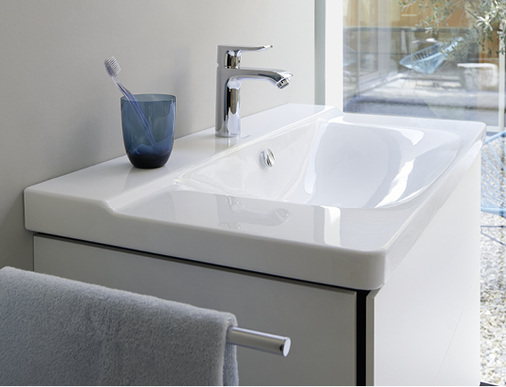 Das Detail macht das Produkt: Die erhöhte Armaturenbank der Waschtische präsentiert sich – vom Nassbereich optisch getrennt und trotzdem aus einem Guss – als großzügige Ablagefläche für Accessoires. Das breite, randlos anmutende Becken schafft durch größtmögliches Innenvolumen Bewegungsfreiheit. Die asymmetrische Waschtischversion bietet zusätzlichen Stauraum und sorgt für gestalterische Spannung. Harmonisch verbindet sich die Formgebung von WC und Bidet mit der Sprache der Waschtische. Mehr Breite bewirkt hier ein spürbar komfortableres Sitzen. Die randlose Optik, kombiniert mit großen Radien im vorderen Bereich, verspricht auch der Wanne ein maximales Innenvolumen. Gut fügen sich auch die speziellen Duschwannen in das Gesamtbild von P3 Comforts ein. Der leicht zu reinigende Ablauf ist in die erhöhte Ablage integriert und unterstreicht die klare Linie. In Kombination mit der Duschabtrennung Open Space B entsteht ein ansprechender Duschplatz.