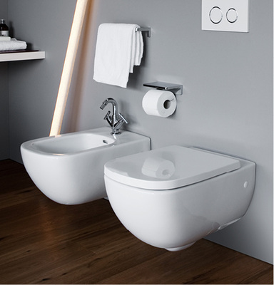 Zur Collection gehören zudem mehrere unterbaufähige Waschtische in Größen zwischen 50 und 160 cm, bei denen ein organisch geformtes Becken fast wie eine Lagune in ein planes, flaches Waschtischpaneel sanft eingelassen ist. Weitere Optionen bei der Badplanung bieten ein 160 cm breiter Doppelwaschtisch, drei asymmetrische Waschtisch-Schalen und Badewannen aus Sanitäracryl. Ein Wand-WC, eine Stand-WC-Kombination sowie ein Stand- und ein Wand-Bidet, Waschtischunterschränke, Hochschrank und Halbhochschrank sowie ein modulares System von offenen, farbigen Möbelboxen vervollständigen das Sortiment.