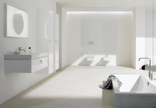Mit Preciosa II bietet Keramag attraktive Ergänzungen. Hier haben die Keramag-Designer Waschtische mit reduzierter Ausladung und Formgebung kreiert. Auf die bisherige abgesenkte Hahnlochbank wurde dabei bewusst verzichtet. Das Wand-WC und das Bidet schaffen mit ihrer konsequenten Formensprache eine überzeugende Verbindung zum Waschplatz. Komplettiert wird das Sortiment durch Möbelelemente.