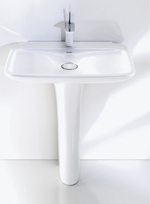 Die Harmonisierung dieser Eigenschaften schlägt sich in der Verbindung der einzelnen Teile nieder. Keramik und Armaturen wurden zu einer Symbiose gestaltet. Die Armatur ist an der Verbindungsstelle zum Waschtisch pur und weiß wie die Keramik selbst. Der Waschtisch ist außen weich und dezent eingeformt und erreicht dadurch Großzügigkeit und Eleganz. Innen ist er flach und in einer sanften Welle nach innen gezogen. Dabei vollzieht sich die Wellenbewegung im Bereich von Millimetern. Alle Linien verlaufen ausgesprochen sanft und sollen der Serie eine poetische Leichtigkeit verleihen – die Produkte schweben nahezu und wirken wie entmaterialisiert.