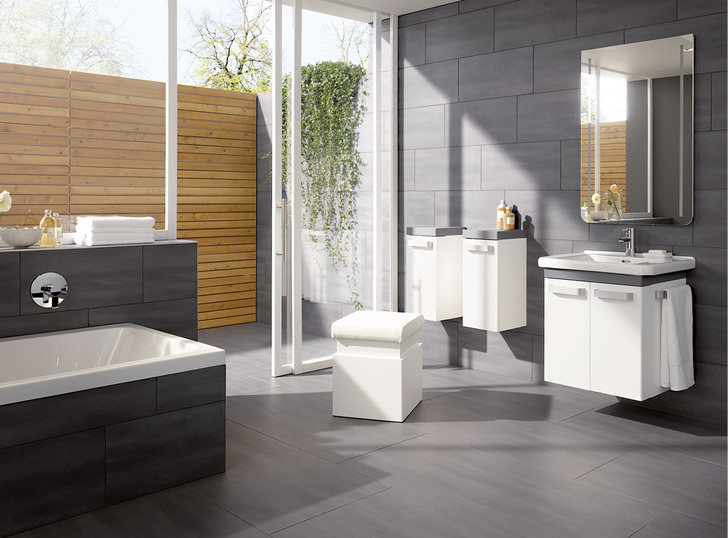 Die Wand-WCs gibt es als Tiefspül-WC mit 55 cm Ausladung, als spülrandlosen Tiefspüler mit 70 cm Ausladung und in der Flachspülversion mit einer Komfortbreite von 39 cm und 70 cm Ausladung. Ergänzt wird das Sortiment durch ein breiteres Tiefspül-Stand-WC. Zwei WC-Varianten weisen rutschhemmende Fasen für die WC-Sitze auf. Zudem gibt es spezielle Sitze und Sitzringe. Stabilität sichert die breitere Sitzbefestigung auch schwergewichtigen Personen oder Rollstuhlfahrern, die seitlich auf die WCs übersetzen können. Das Möbelprogramm gibt Bädern einen wohnlichen Charakter und ermöglicht auch im Sitzen eine komfortable Nutzung.