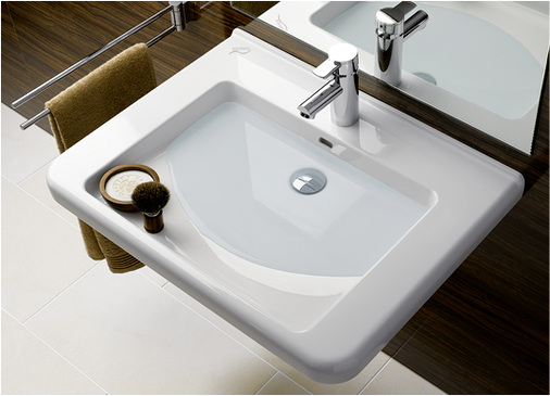 Keramikkörper : Waschtisch 55, 60, 65 cm, Waschtisch 75 x 55 cm, alternativ unterfahrbar nach DIN, Waschtische mit zwei Wasserebenen im Innenbecken, Halbsäule, spülrandloses Tiefspül-WC mit 70 cm Ausladung, Flachspül-WC wandhängend mit 70 cm Ausladung und 39 cm Breite, Tiefspül-WC bodenstehend, Höhe 46 cm, Breite 39 cm, Tiefspül-WC wandhängend, Ausladung 55 cm, WCs teilweise mit keramischer Fase gegen Verrutschen des Sitzes
