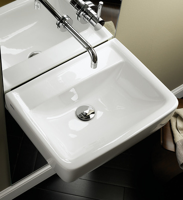 Mit der im rechteckigen Design gestalteten Serie Renova Nr. 1 Plan bietet Keramag auch im design-orientierten und attraktiven Preissegment für den Mietwohnungsbau sowie die öffentlichen und gewerblichen Sanitärbereiche die passenden Produkte. Die eckigen Plan-Waschtische zeichnen sich durch eine strenge Geometrie mit weicher Kummengestaltung und breitem Rand aus. Alle Waschtisch-Modelle können mit Halbsäule und Kerafix-Schnellbefestigung kombiniert werden. Die Waschtische können standardmäßig an der Wand befestigt oder auf einer Platte aufgelegt werden.