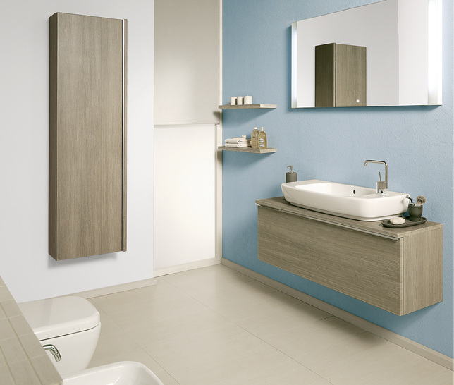 Zudem bietet Shift mit über 160 Möbelvarianten in drei Oberflächenfarben und 15 Waschtischen nahezu unbegrenzte Kombinationsmöglichkeiten. Die Spiegel und Spiegelschränke verfügen über eine integrierte Beleuchtung. Zudem sind die Schränke mit Make-up-Spiegeln und einer Steckdose ausgestattet.