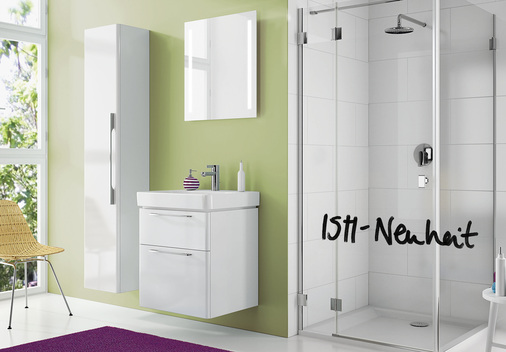 Ein Hochschrank mit integriertem Spiegel rundet das Möbelportfolio ab. Zusätzlich wird optional ein Handtuchhalter angeboten, der direkt an den Möbeln montiert werden kann. Zum Programm gehören außerdem ein Ordnungssystem, ein energiesparendes LED-Beleuchtungsmodul für die Schränke sowie Magnethalter.