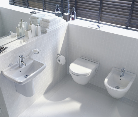 Mit dem breiten Produktprogramm von Starck 3 lassen sich auch für schwierigste Grundrisse bis hin zu Kleinstbädern optimale Lösungen realisieren. Dank des überraschend günstigen Preis-Design-Verhältnisses soll mit dieser Serie jetzt Design auch in den öffentlichen und halböffentlichen Bereich Einzug halten. Ob im Krankenhaus, in Bürogebäuden, im Bahnhof oder am Flughafen, ob in Kleinstbädern oder großen Sanitäranlagen – Starck 3 erfüllt alle nationalen und internationalen Qualitäts- und Zulassungsstandards. Im Privatbad, wo ein schönes, funktionelles Produkt gefragt ist, bietet Starck 3 ein Design, das nicht nur für viele Menschen erschwinglich ist, sondern auch von allen bequem genutzt werden kann. Abgestimmt auf die Bedürfnisse im halböffent-lichen wie privaten Bereich präsentiert sich auch das Starck-Dusch- und Badewannenprogramm aus Acryl von Duravit. Damit ergeben sich im Objektbau ganz neue Planungsmöglichkeiten, denn als erste Designserie in diesem Segment bietet das Starck-Programm neben der durchgängigen Formensprache auch eine erstaunliche Variantenvielfalt.