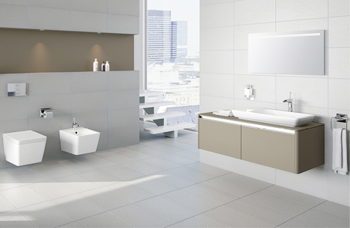 Die Waschtische sind in verschiedenen Größen erhältlich – ob als Solitär-, Möbel-, Aufsatz-, Compact- oder auch als asymmetrische Ausführung. Sowohl die WCs als auch die Bidets sind als Stand- oder Wand-Variante lieferbar. Von Weiß matt oder hochglänzend lackiert, Panacotta Creme und Hellgrau bis zu Dunkelgrau und Schilf matt lackiert reicht die Palette der Möbelfarben. Details wie beidseitig verspiegelte Türen, Spiegelleuchten, Downlights und Doppelsteckdosen unterstreichen den Komfortanspruch.