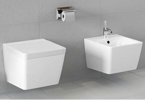 Keramikkörper: Waschtisch 60, 70, 90 cm, Waschtisch kompakt 50 x 30 cm, Aufsatzwaschtisch 60 cm, Wand-WC ohne Spülrand, Wandbidet, Halbsäule, Standsäule