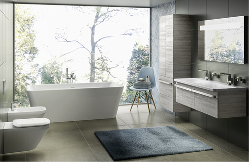 Die eleganten Toiletten sind erstmals mit der neuen Aquablade-Spültechnologie ausgestattet. Dieses System verbindet ästhetisches Design mit perfekter Funktionalität. Das WC-Becken wird rundum hygienisch gereinigt. Die Acrylwannen sind sowohl als frei stehende Solitärlösung, als Vorwandwanne mit gerader Rückseite zur Wandanbindung oder auch als klassische Einbauvariante verfügbar.