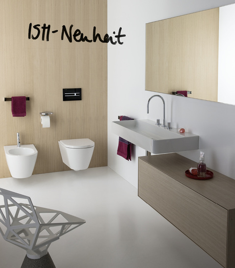 Welche gestalterischen Möglichkeiten die Saphirkeramik von Laufen bietet, zeigt die neue Kollektion Val des Münchner Designers Konstantin Grcic. Zu Val gehören eine rechteckige und eine asymmetrische Waschtisch-Schale (500 bzw. 550 mm breit), beide mit integrierten Ablageflächen, deren feine, dekorative Oberflächentexturen semitrockene Bereiche schaffen. Außerdem gehört ein rechteckiger, wandmontierter Waschtisch in Breiten von 450 bis 1200 mm zur Kollektion. Eine runde und eine rechteckige Aufbewahrungsschale für Accessoires ergänzen das Sortiment.