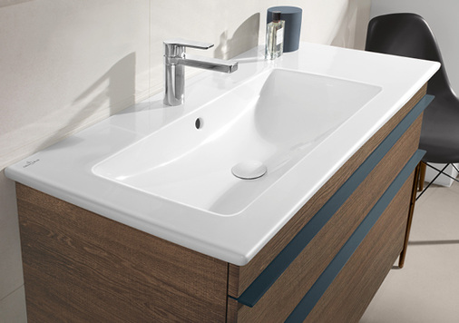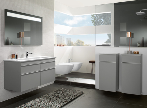 Die filigranen Schrankwaschtische der neuen Badkollektion Venticello von Villeroy & Boch verbinden Design mit Funktion: Mit einer Zargenhöhe von 18 mm wirkt die Keramik leicht und elegant bei einer Beckentiefe von 120 mm. Das Sortiment an Waschtischen umfasst u. a. zwei asymmetrische Varianten mit großen Ablageflächen, einen Aufsatzwaschtisch in Halbeinbau-Optik und eine geschliffene Ausführung speziell für das Projektgeschäft. Die drei Directflush-WCs, erstmals auch als bodenstehende Modelle erhältlich, sind mit Slimseats in zwei unterschiedlichen Designs erhältlich. Der Kunde kann zudem zwischen zwei Bidet-Modellen wählen.
