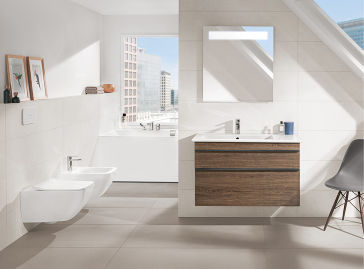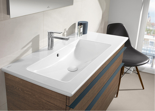 Die filigranen Schrankwaschtische der Badkollektion Venticello von Villeroy & Boch verbinden Design mit Funktion: Mit einer Zargenhöhe von 18 mm wirkt die Keramik leicht und elegant bei einer Beckentiefe von 120 mm. Das Sortiment an Waschtischen umfasst u. a. zwei asymmetrische Varianten mit großen Ablageflächen, einen Aufsatzwaschtisch in Halbeinbau-Optik und eine geschliffene Ausführung speziell für das Projektgeschäft. Die drei DirectFlush-WCs, erstmals auch als bodenstehende Modelle erhältlich, sind mit SlimSeats in zwei unterschiedlichen Designs erhältlich. Der Kunde kann zudem zwischen zwei Bidetmodellen wählen.