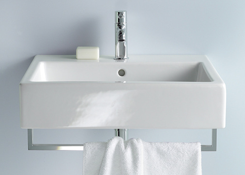 Sukzessive folgte der Ausbau des Programms mit seiner klaren, klassisch eckigen Form. Zu den 60 cm breiten Becken und den charakteristischen Chromgestellen auf zwei Füßen gesellen sich die Maße 50, 80 und 100 cm. Mit Handwaschbecken, Aufsatzbecken und Möbelwaschtischen in diversen Breiten deckt Vero sämtliche Wünsche für einen individuell gestalteten Waschplatz ab.