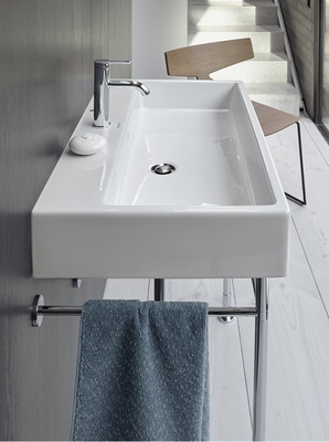 Die Waschtische und Wannen überzeugen mit reduzierten Rändern und einer markanten, geradlinigen Anmutung. Die Waschtische und Aufsatzbecken sind mit den Möbelserien Vero (Design by Kurt Merki Jr.) und L-Cube (Design by Christian Werner) kombinierbar. Diese wurden speziell auf die neue Serie angepasst: Minimierte Überhänge von maximal acht Millimetern in der Verbindung zu den Möbelunterbauten betonen das geradlinige Design. Mit dem optionalen Einsatz der c-bonded-Technologie werden Keramik und Möbel schließlich zu einem puristischen Meisterstück verbunden.