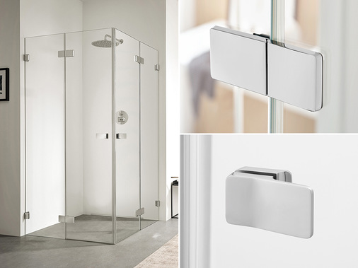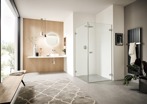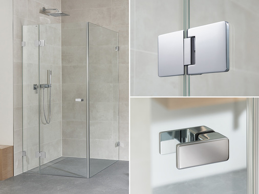 In individuell planbaren Abmessungen lassen sich Glasduschen sowohl mit Pendeltüren als auch mit nach außen öffnenden Türen kombinieren, können freistehend, als Wandmontage oder mit verkürztem Seitenteil im Anschluss an eine Badewanne geplant werden.