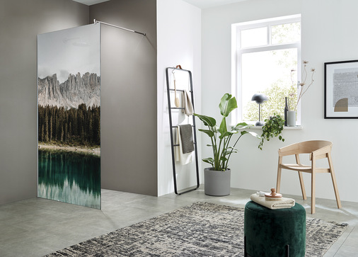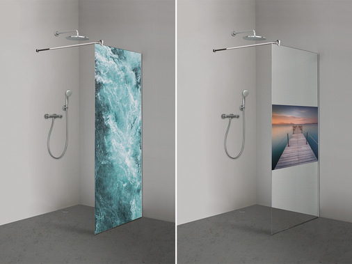 Kombiniert wird die luxuriöse SPRINZ Walk-in-Glasdusche Inloop mit strahlenden Motiven, um dem Bad einen persönlichen Touch zu verleihen: Als Trendsetter entwirft man mit den schwarzen Motiven der Inloop Black Series oder mit den bunten Motiven der Inloop Color Series sein individuelles Highlight. Durch den neuen optimierten SpriColor keramischen Digitaldruck, der sich auf der Außenseite der Glasdusche befindet, leuchten die Motive noch klarer und intensiver. Die Farbe wird in das Glas eingebrannt und ist so sicher gegen Flecken, Abrieb, Kratzer oder Verblassen geschützt. Aus der exklusiven SPRINZ Kollektion können die schönsten Motive für die Duschabtrennung gewählt werden oder ein individuelles Foto auf die Walk-in Dusche gedruckt werden.