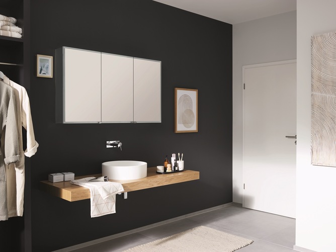 - Spiegelschrank-Konzept mit integrierter umlaufender LED-Beleuchtung