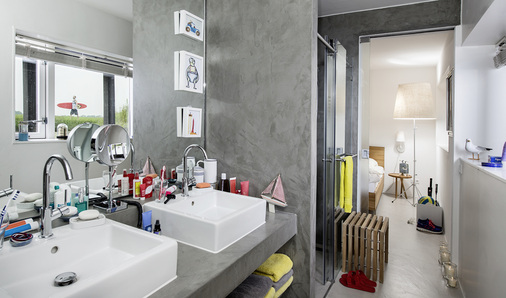 Wo mehrere Menschen zusammenleben, wird das Bad zum Ort der Kommunikation – erst recht, wenn es mehrere Generationen sind, die hier den Tag beginnen, Rituale erlernen und leben, sich umeinander kümmern und sich arrangieren müssen. Das sind in der Regel Paare oder Familien mit Kindern, aber auch Familien, die mit ihren pflegebedürftigen Angehörigen zusammenwohnen. In geschäftigen Familien, in denen jeder seinem eigenen Leben nachgeht, sind Küche und Badezimmer oft die letzten Freiräume für gemeinsame Rituale, gelegentliches Zusammenfinden und der Ort, an dem der Tagesablauf oder Probleme besprochen werden. In einem solchen „Busy Bathroom“ müssen sanitäre Ausstattung und Möblierung vor allem Raum für Improvisation bieten. Hier zählt nicht so sehr das perfekte Styling, sondern die Toleranz von Raum und Bewohnern für das unvermeidliche Chaos.