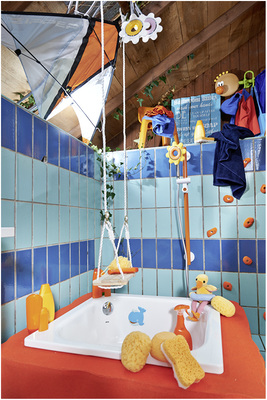 Für Kinder ist das Badezimmer im Idealfall ein Spaßraum, in dem mit Wasser geplanscht und mit Gummitieren, Fläschchen und Schwämmen herumgealbert wird, wo Mama einen abrubbelt und Papa nassgespritzt wird. Oft genug ist das Badezimmer für Kinder aber auch angstbehaftet, etwa aus Scheu vor dem Wasser, aus Schamgefühl beim Klo-Gang oder wegen des lästigen Zähneputzens. Eine Atmosphäre der Geborgenheit hilft hier oft mehr als bunte Becher, und wenn mal was danebengeht, sollte das weder für die Kinder noch die Eltern zum Problem werden.