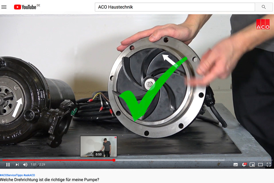 Drehrichtung gibt an, in welche Richtung die Pumpe einer Hebeanlage oder auch eines