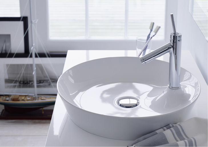 Aber für Duravit zum Beispiel entwickelte die dänische Designerin Cecilie Manz nun eine neue Farbgeneration in sanften Mattlack- und Glasurtönen. Bei der von ihr entworfenen Badserie Luv ist es möglich, die Außenseiten der Waschtische optional seidenmatt in Weiß, Grau oder Sand zu glasieren. Die Doppelfarben werden dabei in zwei Schritten mithilfe einer Schablone von Hand aufgespritzt. Durch den Kontrast mit dem glänzend weiß glasierten Innenbecken entstehen so Einzelstücke von besonderer Optik und Haptik. Diese Gestaltung betont die ovalen Aufsatzschalen mit ihren feinen Linien, großzügigen Innenbecken und klaren Kanten.