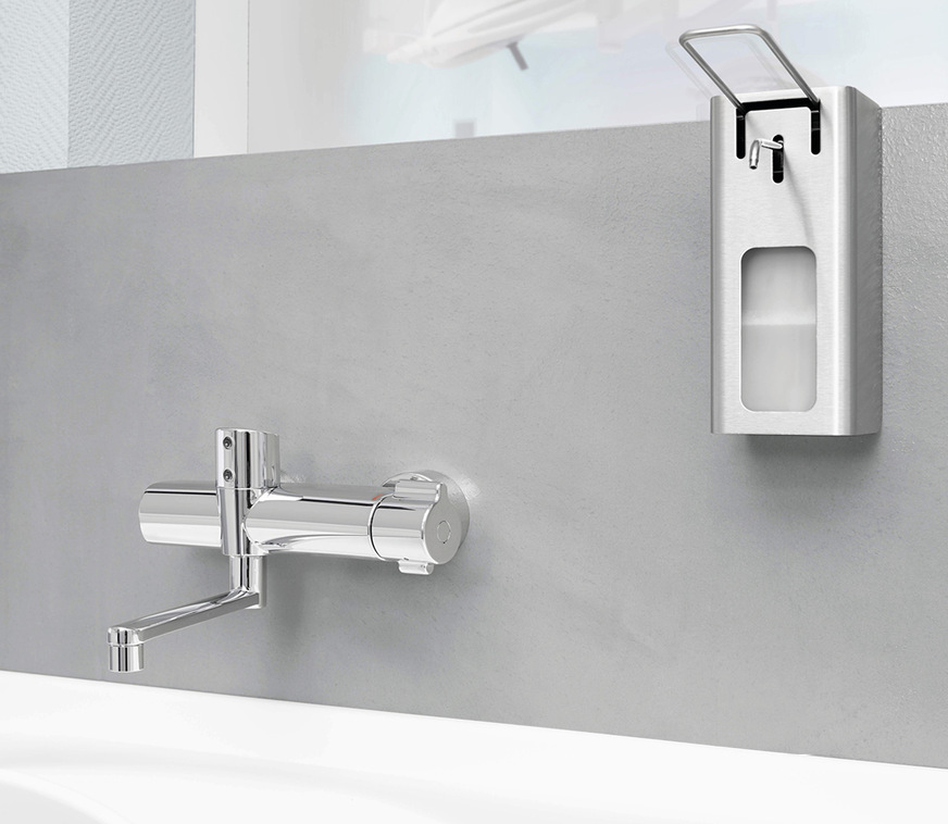 Die berührungslosen HANSACLINICA Aufputz-Thermostate wurden speziell für die sensiblen Anforderungen im professionellen Gesundheitswesen entwickelt. Dank modernster Sensortechnologie wird das Wasser vollkommen berührungslos zum Fließen gebracht. Das ist nicht nur komfortabel, sondern reduziert auch das Risiko einer Übertragung von Viren, Bakterien oder anderen Keimen. Ausgestattet mit smarter Bluetooth®-Funktionalität lassen sich die Thermostate über die kostenlose HANSA Connect App steuern und anpassen. So können je nach Bedarf drei verschiedene Modi (On/Off manuell, On/Off automatisch und On manuell/Off automatisch) für die Sensorsteuerung ausgewählt werden.