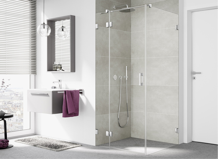 Leichtgewicht in großem Design – das verspricht Kermi mit der neuen Duschkabinenserie „Liga Schwingtür“. Die Beschlagdusche ist geeignet für Duschnische, Ecke oder U-Kabine, sie ist mit neuen Schwingtürvarianten ausgestattet. Das 5 mm dicke, hochtransparente Einscheiben-Sicherheitsglas sorgt laut Anbieter für einen leichten Transport, werkseitig vormontierte Beschläge sollen zu einem leichteren und schnelleren Einbau führen. Serienmäßig 2 m hoch, ist sie mit ihrem schmalen Wandprofil wie geschaffen für die Montage auf Fliese neben Wandpaneel. Auf Maß mit Wandbeschlag ermöglicht sie jetzt eine glasbündige Montage an der Fliesenkante oder der Kante des Wandpaneels, und das mit Designcharakter.