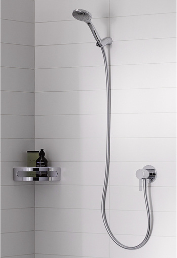 Was bekommt man alles in eine Duscharmatur? Offensichtlich jede Menge. Keuco ist es gelungen, mit „IXMO Solo“ eine Armatur zu entwickeln, die Einhebelmischer und Schlauchanschluss vereint. Es wird nur ein einziger Grundkörper montiert. Es ist kein weiteres Wasser führendes Element für eine komplette Duschlösung notwendig. Die Unterputzeinheit ist klein und bietet eine besonders flache Einbautiefe von minimal 65 mm. Dadurch ist vor allem der Einbau in dünnen Wänden möglich oder bei der nachträglichen Modernisierung. Die Einbautiefe lässt sich von 65 mm bis zu 95 mm flexibel und stufenlos einstellen. Wassertemperatur und -menge können bei Bedarf auch jederzeit begrenzt werden. Mit einem Durchmesser bzw. einer Kantenlänge der Rosette von nur 90 mm und einer fixen Ausladung von 90 mm ist das Fertigset beeindruckend klein. Und mit nur einem Modul ergibt sich eine noch reduziertere Optik für ein klares und aufgeräumtes Bild in der Dusche. Die Rosetten gibt es in rund oder eckig, mit dem universellen IXMO-Griff.