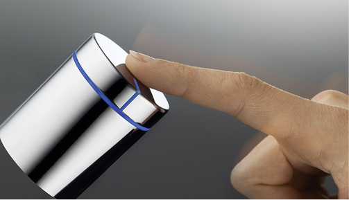 KWC hat eine elektronische Bedieneinheit für Armaturen entwickelt, die sich damit über ein berührungsempfindliches Feld steuern lassen: Bei einmaligem Tippen fließt kaltes Wasser, bei zweimaligem wird es warm und bei drei Touchs heiß. Eine LED-Anzeige an der Bedieneinheit signalisiert die jeweilige Temperatur in Blau, Orange oder Rot. Dadurch sieht der Benutzer im Voraus, welche Temperatur eingestellt ist, und ist vor Verbrühungen geschützt. Auch Fließdauer und -stärke können bei einer elektronischen Armatur in der Regel individuell und stufenlos programmiert und gespeichert werden. Ideal für die Wanne: Dank Voreinstellung füllt sie sich auf Knopfdruck in der gewünschten Temperatur und Einflussmenge automatisch selbst. Die Bedieneinheit lässt sich frei platzieren. Dank einer Wireless-Verbindung kann sie sogar völlig losgelöst von der Armatur beliebig im Raum angebracht werden. Mit einem starken Magneten ausgestattet, wird die Bedienung ähnlich wie eine magnetische Eieruhr auf einer Metalloberfläche angedockt. So kann sie flexibel abgenommen werden, der Nutzer kann sie dort platzieren, wo es für ihn am praktischsten ist, oder kann sie auch problemlos in der Hand mitführen.