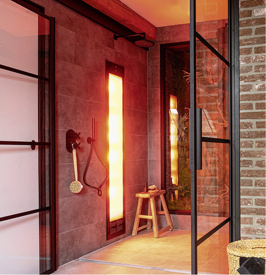 Wasser und Wärme in einem Durchgang: Bei den Sunshower-Produkten ( www.sunshower.de ) wird während des Duschens eine zusätzliche Infrarotwärmequelle aktiviert, wodurch Verspannungen aktiv gelöst und Schmerzen angenehm gelindert werden können. Die Geräte werden im Duschbereich verbaut. Es gibt verschiedene Varianten: Soll eine bereits vorhandene Dusche aufgewertet werden, bieten sich die Nachrüstmodelle Combi oder Solo an. Wird von Beginn an eine Lösung eingeplant, so sind die Modelle Deluxe, Pure und Pure XL die Wahl. Sie sind in Weiß und Schwarz erhältlich. Die Wirkung ist laut Anbieter (Klaus Schlenker GmbH) spürbar bei Sportverletzungen und bei steifen Gelenken. Durch die verwendeten Infrarotstrahlungen A und B werden die Giftstoffe in der Epidermis gelockert und nach außen geschwemmt. Das bei einigen Geräten alternativ anwählbare UV-Licht kann laut Pressemitteilung zudem das körpereigene Vitamin D verdoppeln, um das Immunsystem zu stärken. Zusätzlich sorge das UV-Licht für eine höhere Knochendichte, erhalte die Muskelfunktionen und könne zur Unterstützung von Hautkrankheiten genommen werden, es entstehe ein gesünderes Hautbild, heißt es weiter.