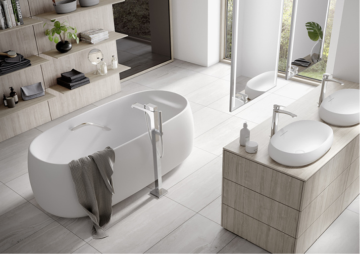 Toto bietet Floating-Badewannen an. Die Idee ist an japanische „Onsen“ angelehnt (die Bezeichnung steht für eine zum Baden und zur Erholung geeignete heiße Quelle). Auf der ISH 2019 wurde die Variante „Recline Comfort“ präsentiert. Es handelt sich um eine Technologie, die auf umfassenden ergonomischen Studien basiert und die es ermöglichen soll, maximal zu entspannen. Das Innere ist derart geformt, dass der Badende eine optimale Entspannungsposition einnehmen kann. Schultern und Kopf liegen in entspannter Haltung; auf der ergonomisch geformten Kopfstütze ruht der Kopf und wird leicht. Der Körper versinkt wie in einer angenehmen Umarmung. Vom Nacken bis zu den Lendenwirbeln bleibt die natürliche S-Kurve der Wirbelsäule erhalten und führt zur Tiefenentspannung, was ein umfassendes Gefühl von Leichtigkeit und Ruhe mit sich bringt. Die Badewanne wird wahlweise in einem runden oder eckigen Design angeboten. Beide Modelle sind jeweils mit zwei Handgriffen ausgestattet, die beim Baden eine bequeme Armablage bilden und als nützliche Aufstehhilfe fungieren.