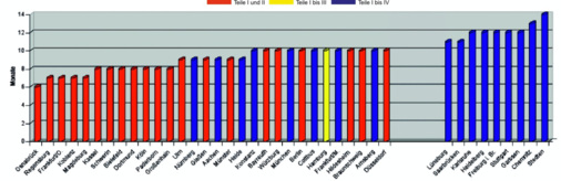 Wer einen Teilzeitlehrgang anstrebt, wird für die Teile I bis IV in Osnabrück am günstigsten bedient (4750 Euro). Auch hier liegen die Aachener mit 9345 an der Spitze. Vorbereitung auf die Teile I und II in Teilzeitform gibt es in Kaiserslautern am billigsten (3960 Euro). Wer sich über die Teile I und II in Vollzeitform schlau machen möchte, zahlt dafür in Magdeburg am wenigsten (5285 Euro). Alle Infos zu Preisen, Dauer und Inhalten finden Sie in der Übersicht. Weitere Detailangaben enthält unser Interangebot auf https://www.sbz-online.de/ .
