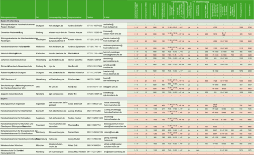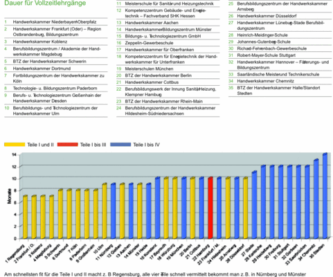 Die hier vorgestellten Seminare sind in der Meisterschuldatenbank unter https://www.sbz-online.de/ aufgeführt. Hier können Interessenten die Lehrgänge nach den unterschiedlichsten Parametern selektieren und finden auch die direkten Links zu den Bildungsstätten.