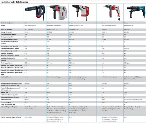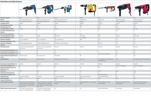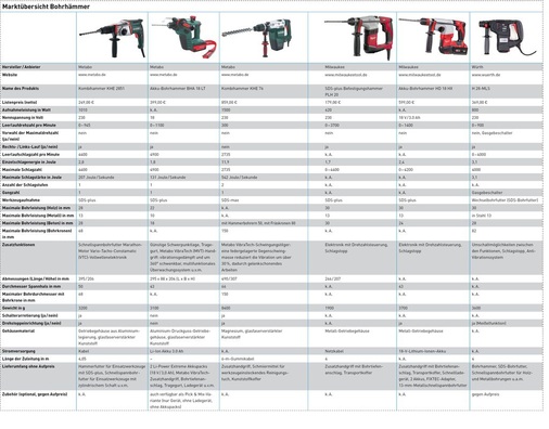Die Robustheit und Langlebigkeit ist für alle Geräte wichtig, ebenso die Schlag- und Bohrleistung und damit ein hoher Arbeitsfortschritt für alle Anwendungen. Antivibrationslösungen sind dagegen eher im Bereich der großen Hämmer von Bedeutung, wenn über längere Zeit gebohrt oder gemeißelt werden soll. Die Handlichkeit und das geringe Gewicht sind vor allem bei Arbeiten über Schulterhöhe zu beachten.