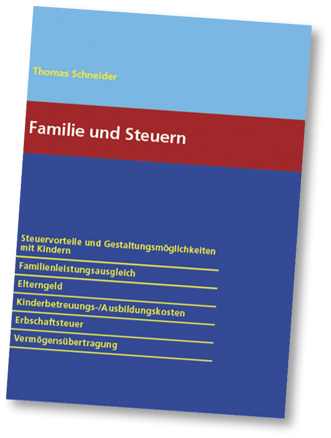 Unser SBZ-Autor Thomas Schneider erläutert in seinem neuen Buch die für Familien und ihre Kinder wichtigen steuerlichen Sachverhalte im Unternehmen. Themen sind: Steuervorteile und Gestaltungsmöglichkeiten mit Kindern, Familienleistungsausgleich, Elterngeld, Kinderbetreuungs-/Ausbildungskosten, Erbschaftssteuer, Vermögensübertragung. Der Ratgeber ist kartoniert und umfasst 152 Seiten. Er ist im HDS-Verlag erschienen und kostet 39,90 Euro.