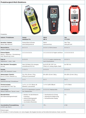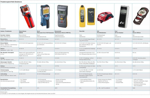 Es lohnt sich, die Geräte einiger Hersteller miteinander zu vergleichen, wobei einige auch mehrere Modelle im Produktprogramm führen – beispielsweise der Hersteller Zircon. Aus dem Angebot ragen der Wallscanner D-tect 150 von Bosch sowie der Multidetektor PS 38 bzw. dessen ab September 2014 erhältlicher Nachfolger PS 50 von Hilti deutlich heraus. Mit der Kombination mehrerer Ortungsverfahren und einer intelligenten Softwaresteuerung wurden damit Multi-Detektoren geschaffen, die im Hinblick auf Präzision und Zuverlässigkeit konkurrenzlos sind – leider auch im Preis. Doch die Investition kann sich schnell bezahlt machen, schließlich kann eine eventuell fällige Eigenbeteiligung bei notwendig werdenden Reparaturen schnell die Anschaffungskosten für einen Detektor überschreiten.