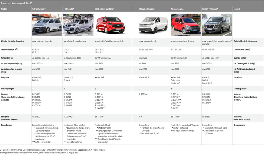 Für die Kaufentscheidung könnten weitere Modelle interessant sein, die (mit größerem Laderaum) für die Klasse der 3,5-Tonner entwickelt wurden, jedoch durch Ablastung als 2,8- bzw. 3-Tonner gehandelt werden: