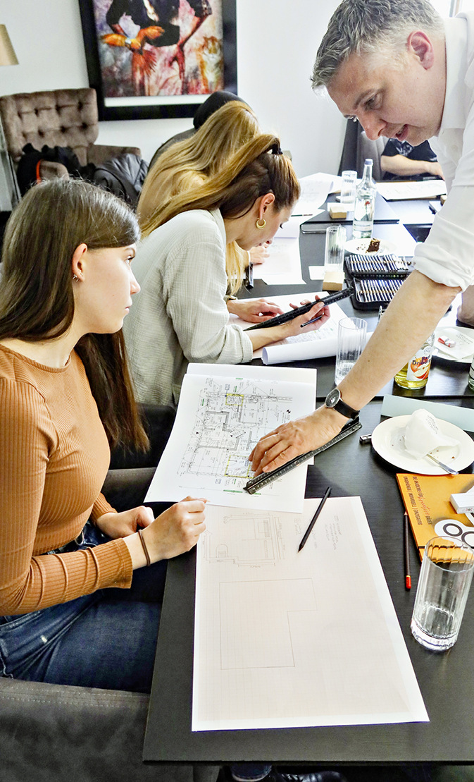 Durch die Zusammensetzung im Kurs ergab sich eine vorteilhafte Mischung sowohl aus Planerinnen in der Großhandelsausstellung als auch aus Beratern im Fachhandwerk. Einige waren als Kaufleute noch jung im Beruf bzw. durch Quereinstieg zum Job gelangt. Andere hatten bereits etliche Jahre Berufserfahrung und wollten ihre Fachkenntnisse noch steigern. Unterschiedliche Ideen und Herangehensweisen dieser 15 Personen verschiedenen Alters hatten die Gruppe offenbar inspiriert und ein Team auf Zeit zusammengeschweißt. So konnten beispielsweise Teilnehmerinnen während der zwölf Präsenztage wichtigen Input zur Sortimentstiefe oder zu kommenden Trends geben. Andererseits gaben langjährige Praktiker ihre Erfahrungen weiter, ob Trockenbauer, Fliesenleger oder Installateur: Sie schätzten ein, ob sich zu den kalkulierten Projektkosten tatsächlich das möglich machen lässt, was die Planung da gerade aufs Papier gebracht oder am Bildschirm realisiert hatte.