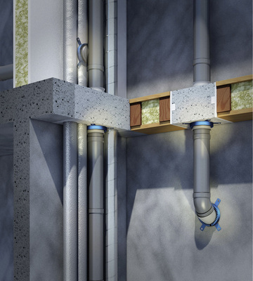 Abhängig von der Zulassung bei der hier als Beispiel dienenden Manschette, ist diese teileingemörtelte Einbauart generell zulässig, da sie der aufgesetzten Montage gleichgesetzt wird. Diese Aussage muss allerdings für jede Manschette in der jeweiligen Zulassung geprüft werden. Weiterhin ist auch die gänzlich eingemörtelte Montage möglich, aber nicht für jeden Rohrtyp zugelassen. Daher ist es notwendig, in den Anlagen zur Zulassung nachzuschauen, ob die Manschette für den konkreten Rohrtyp, die Dimension und diese Einbauform zugelassen ist.