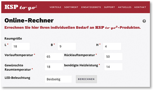 Mit dem Online-Rechner auf www.ksp2go.com können schnell und unkompliziert Standardauslegungen für kleine Hallen erstellt werden. Außerdem lässt sich mit nur einem Klick eine Materialliste ausdrucken. Für kompliziertere Projekte hat der Anbieter Serviceteams aufgestellt.