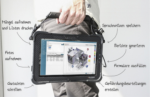 Auch die Display-Helligkeit spielt, etwa bei Dokumentationen auf dem Dach, eine wichtige Rolle. Bewährt haben sich spezielle Rugged-Smartphones und -Tablets. Damit Mängelprotokolle von der Baustelle aus versandt werden können, ist eine mobile Internetverbindung Voraussetzung. Dann kann man auch gegebenenfalls auf Büro- und Projektdaten zugreifen oder mobil erfasste Daten sofort mit den Bürodaten abgleichen.