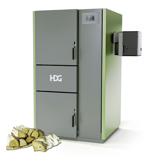 Die Holzvergaserkessel HDG H20-30 (mit einer Nennwärmeleistung von 20 bis 30 kW) lassen sich sowohl mit Scheitholz (bis Halbmeterscheite) als auch mit Spänebriketts befeuern. Durch seine Rotationsbrennkammer ist eine effiziente und emissionsarme Verbrennung garantiert. Praktisch ist, dass sich die Kessel bei Bedarf, z. B. bei einer Teilsanierung der Heizanlage, mit einem Ölbrenner erweitern lassen, wobei weiterhin nur ein Kamin nötig ist. Der Anschluss des Rauchrohrs am Kessel erfolgt ganz flexibel von hinten oder von der Seite.