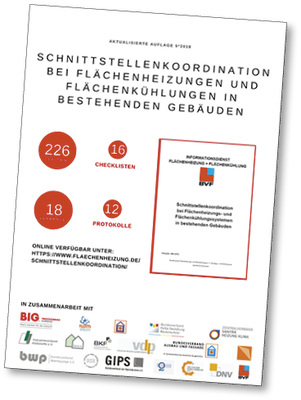 Der BVF hat die Fachinformation Schnittstellenkoordination bei Flächenheizungen und Flächenkühlungen in bestehenden Gebäuden aktualisiert und modernisiert. Die neue Fassung zeigt übergreifende Zusammenhänge auf und ergänzt die geltenden Normen und technischen Regeln. Fachhandwerker bekommen damit eine praktische Hilfestellung für ihre tägliche Arbeit.